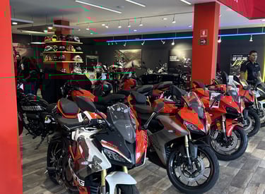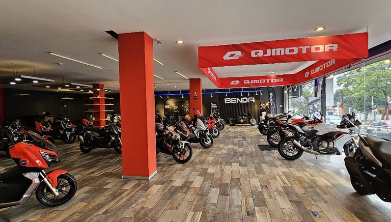 Descubre la adrenalina y pasión por las motos, 4 Pisos llenos de adrenalina con marcas como: QJMOTOR, BENDA, KOVE, TRECK, ZONTES. Área de accesorios y servicio.